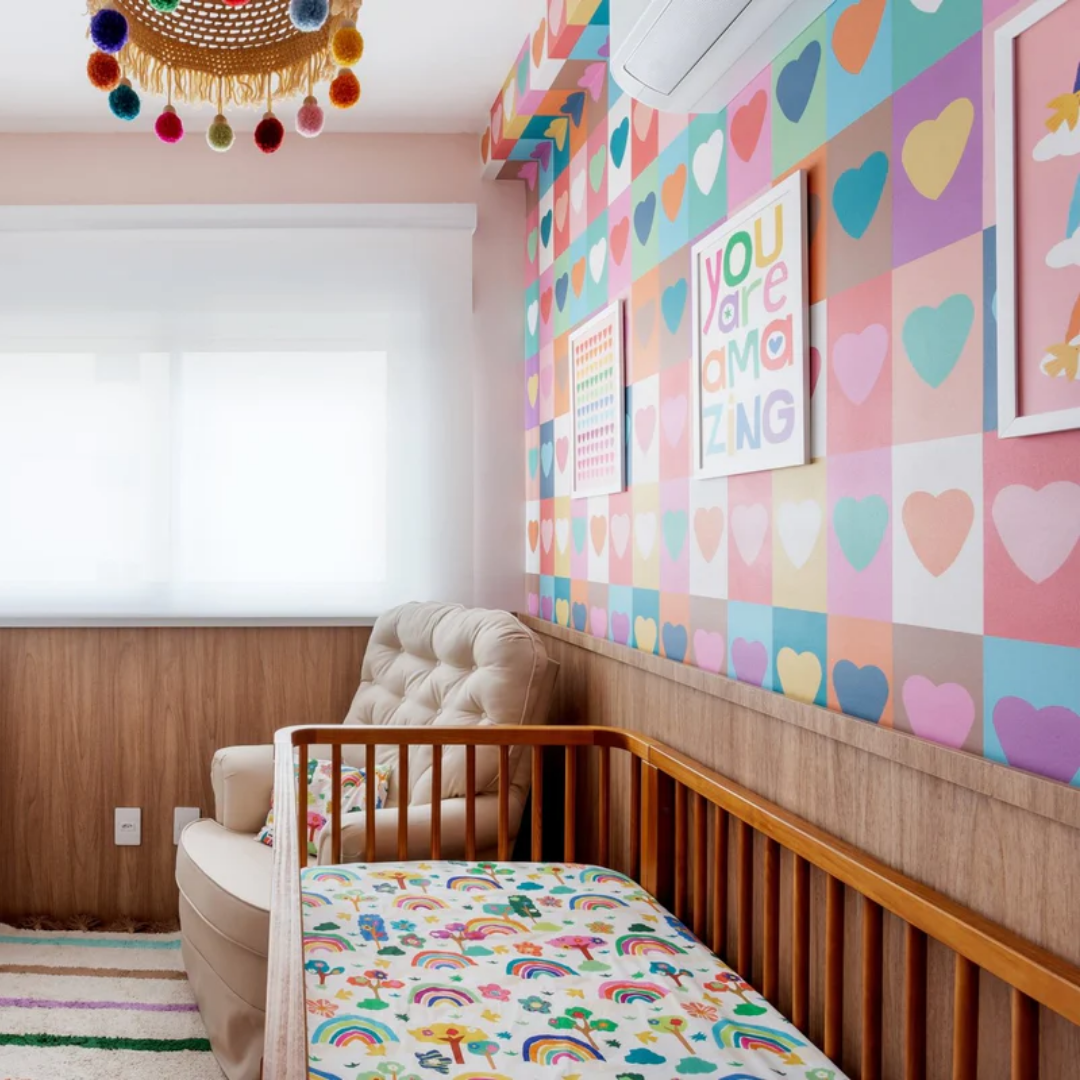 The Wallpaper – Framed Heart is like a magical portal: it brings colors, adventures, and warmth to the children’s room, filling it with joy and enchantment. In addition to being a transformative element in the decor, the children’s wallpaper is made with FSC approved materials and high-definition printing, providing exceptional quality for decorating the kids’ room. With a matte finish and smooth texture, it replaces paint in a practical and durable way. The wallpapers elevate the decoration to another level!
